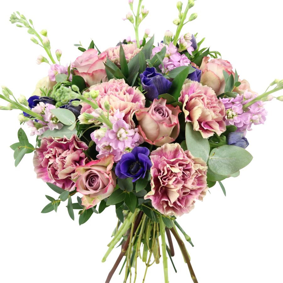 Celebrate your special moments with our beautiful and unique bouquet, featuring a stunning mix of roses, carnations, matthiola, and anemones.