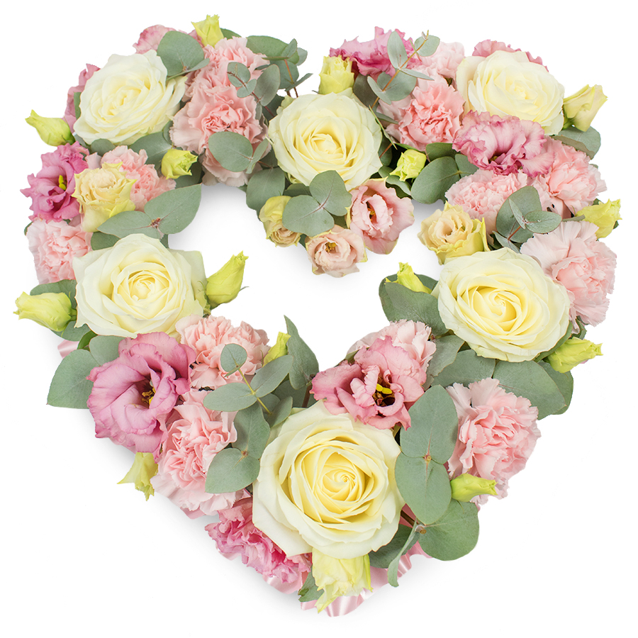 Express your deepest emotions with our stunning tribute bouquet, meticulously crafted to honor and remember loved ones. This breathtaking arrangement features a perfect blend of white roses, pink carnations, pink lisianthus, and eucalyptus, ensuring a unique and heartfelt display.
